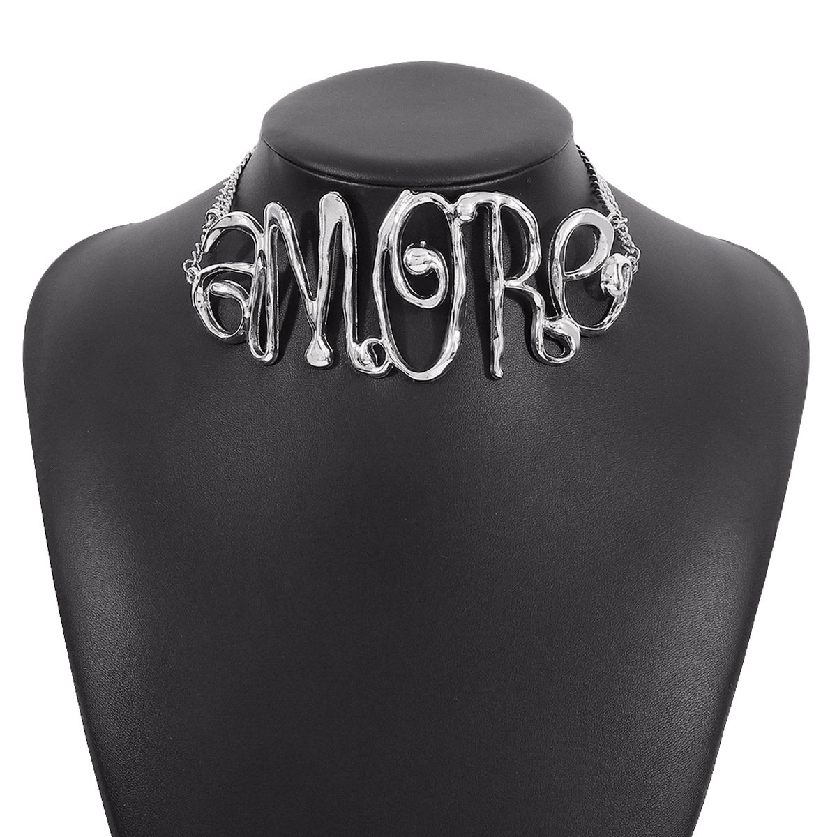 KMVEXO Exaggerated Chunky Heavy Metal Torques Choker Necklace Women Punk Goth Hollow Letter Chain Grunge Jewelry Steampunk Men